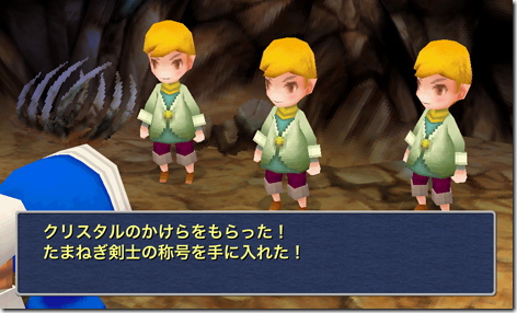 北の洞窟に入ると子供たちがボムに襲われているので、戦闘して救出すればジョブ「たまねぎ剣士」を得られます。