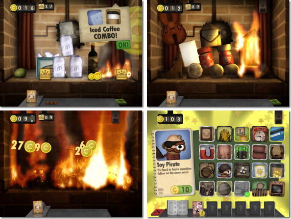 燃やせる物は多種多様で、トースターを燃やすとパンが飛び出し、トウモロコシを燃やすとポップコーンになって飛び散るなど、ユニークなしかけも多い。