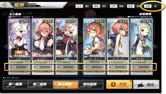 ただし限界突破すると燃費が悪化。大型艦や高レアキャラも燃費が悪く、それらが中盤から問題になってきます。