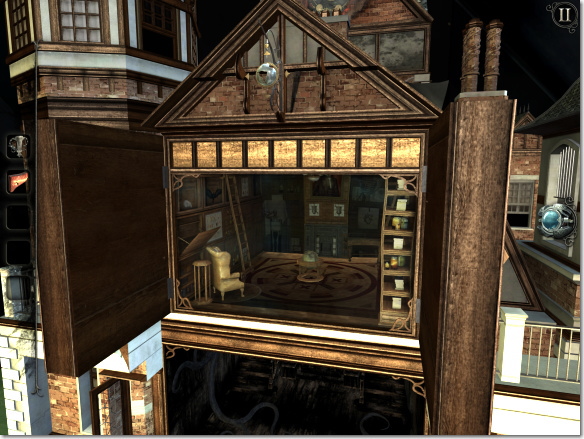 あくまでドールハウスですが、接眼鏡を使えばこの奇妙なドールハウスの中に入れ、あたかも実際の館のように探索することができます。