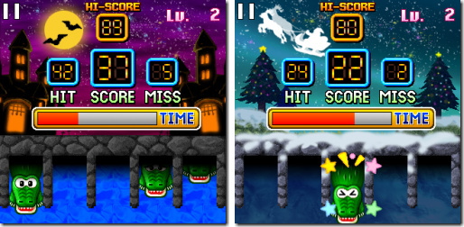 ルールはオリジナルと同じで、次々出てくるワニを叩きまくるというもの。