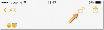 画面右上にある「四角に矢印」のボタンを押すと、「メモをロック」のアイコンが表示されます。